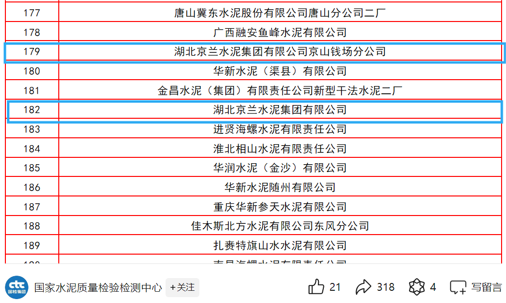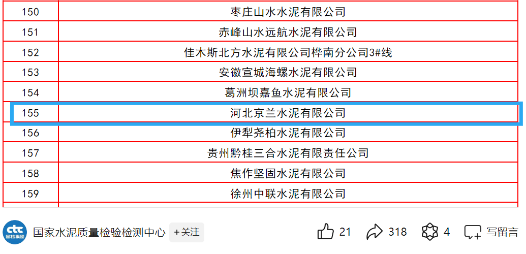 8月2日,备受瞩目的“天宝华瑞杯”全国第十九次水泥化学分析大对比获奖名单正式揭晓,在这场全国性的水泥行业质量竞技中,京兰5家水泥公司均荣列榜单。