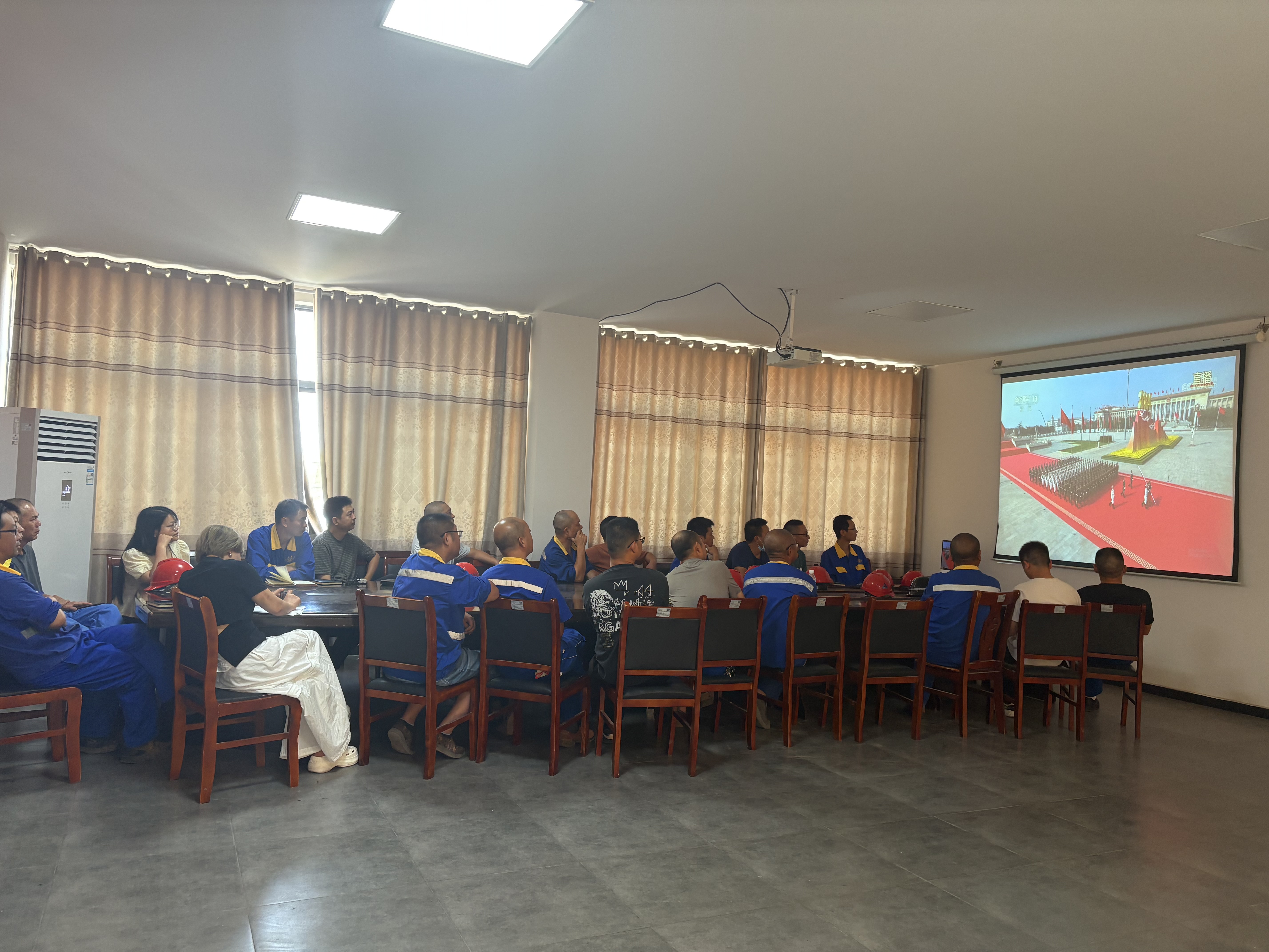 上午9时,大家准时聚集在各公司的会议室,自发整理好衣襟,眼神中满是期待与肃穆。当直播画面切到天安门广场,鲜艳的五星红旗在晨光中冉冉升起,激昂的歌声里,是跨越代际的信仰传承,是属于京兰人的集体共鸣。?
